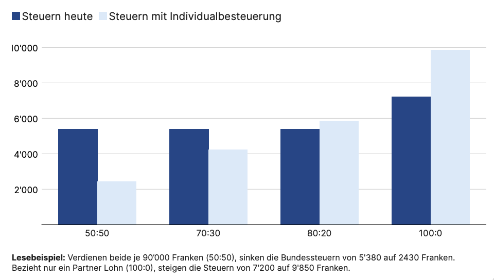 Am 8. März entscheiden die Schweizer Stimmbürgerinnen und Stimmbürger darüber, ob Ehepaare auf Bundesebene gleich wie Konkubinatspaare individuell besteuert werden. Bei einem JA könnten später auch die Kantone und Gemeinden diesem Modell folgen.