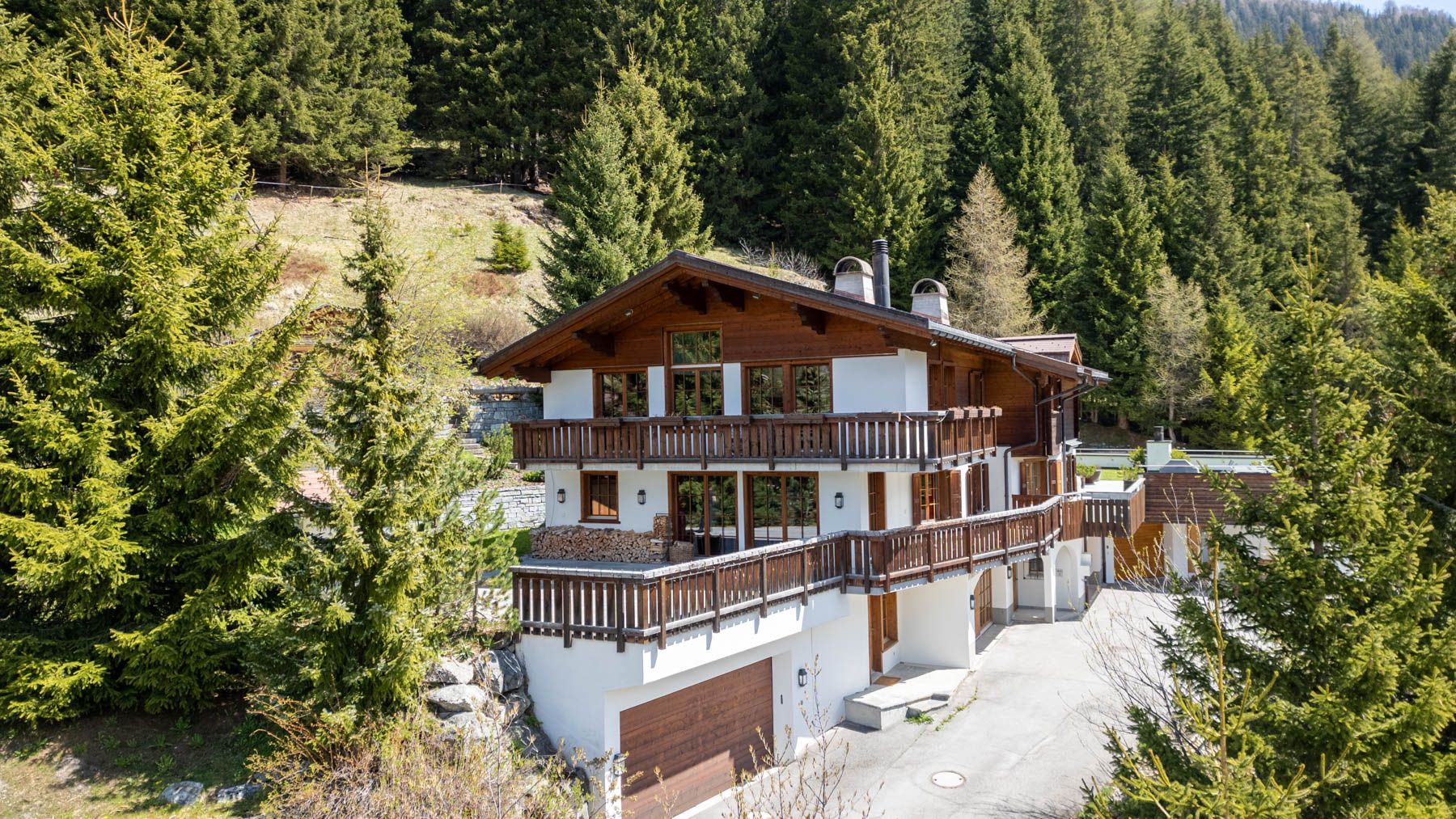 The 993 m² lot, slightly elevated at the edge of the forest, offers a high level of privacy and tranquility. Located in a sought-after neighborhood, the home enjoys stunning views over the Dischma Valley and abundant sunshine throughout the day. Use as a second home is permitted.