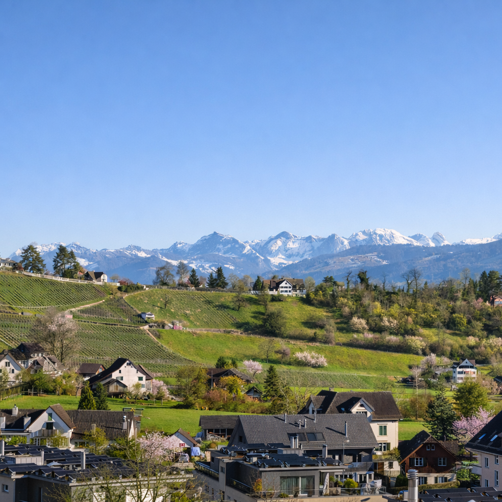 Die erhöhte Position bietet einen eindrucksvollen 180°-Panoramablick über den See bis in die Alpen. Eingebettet in eine gepflegte Umgebung überzeugt die Lage zudem durch ihren hohen Freizeitwert. Einkaufsmöglichkeiten, Schulen und öffentliche Verkehrsmittel befinden sich in bequemer Nähe und sorgen für einen unkomplizierten Alltag.