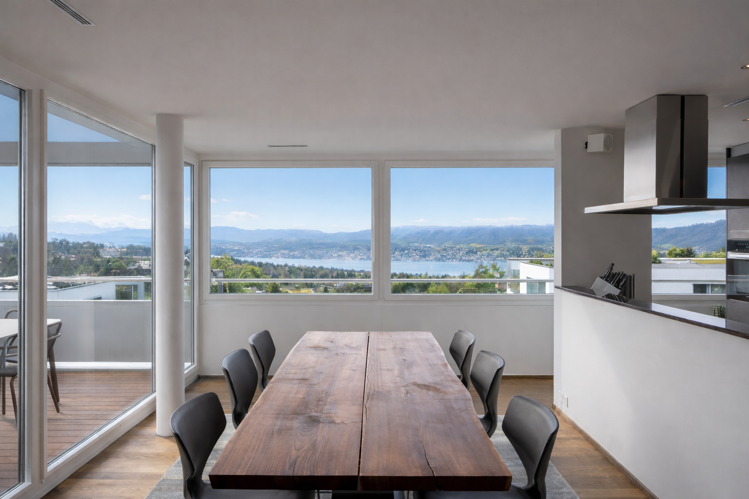 Diese moderne 5½-Zimmer Attikawohnung mit rund 170 m² Wohnfläche befindet sich in einer der besten Lagen von Zürich Witikon, umgeben von viel Grün und mit ganztägiger Sonneneinstrahlung. Die grossen Fensterfronten sorgen für viel Tageslicht und einen wundervollen Blick auf das Seebecken. Hier geniessen Sie die Kombination vom Leben im attraktiven, durchgrünten Wohnquartier und besten Verbindungen in die nahe Innenstadt.